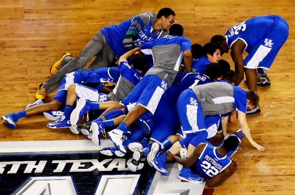 L’ailier Alex Poyhtress a été l’un des grands artisans de la victoire de l’équipe de Kentucky samedi soir face à Wisconsin. Malheureusement, la partie s’est mal terminée pour lui puisqu’il a eu le malheur de se retrouver tout en dessous de la pile humaine faite par les joueurs célébrant leur victoire après le dernier échec de Traveon Jackson à la sirène.
