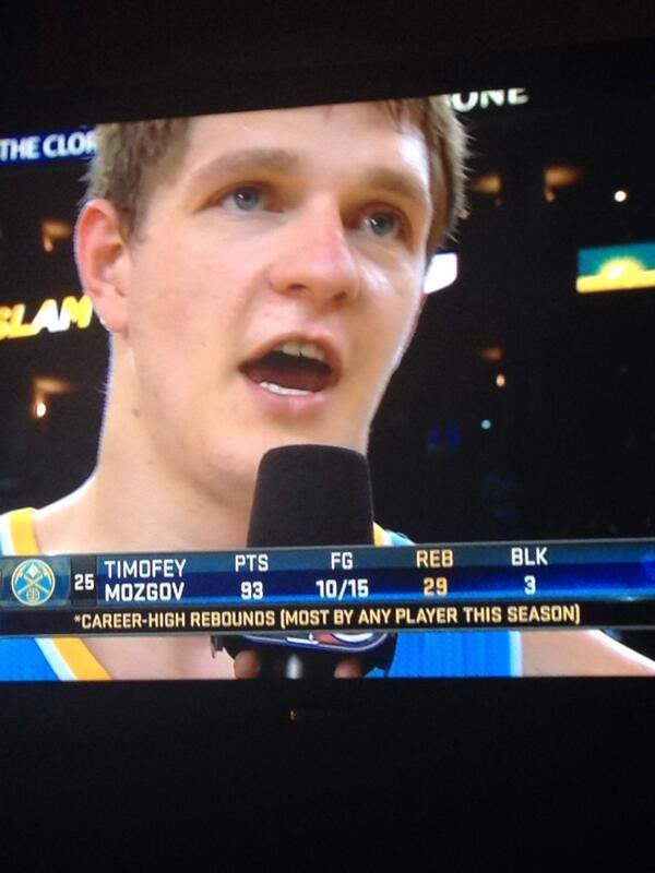 Si Timofey Mozgov n’a pas réussi un match à la Wilt Chamberlain avec 93 points, il a tout de même réalisé la meilleure marque aux rebonds de la saison.