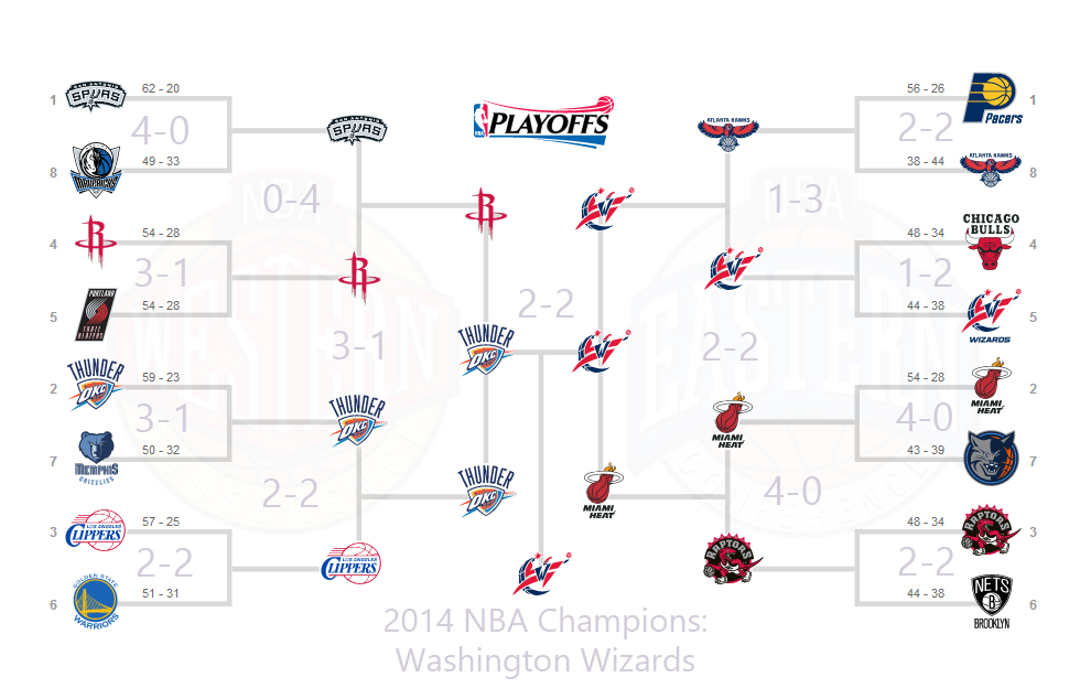 Qui serait le champion NBA si les résultats des matchs joués en saison régulière se répercutaient en playoffs ? Si l’on se penche sur chaque série et que l’équipe l’ayant emporté en saison régulière passe au tour suivant, ce sont les… Washington Wizards qui soulèveraient le Larry O’Brien Trophy ! En cas d’égalité, le vainqueur de la série serait celui ayant le meilleur différentiel de points lors des affrontements directs. Le Thunder serait quant à lui le malheureux finaliste.