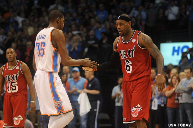 Le Thunder qualifié, la NBA va pouvoir remettre à Kevin Durant son trophée de MVP lors du premier match de la demi-finale de conférence. Selon ESPN, c’est a priori mardi que la star du Thunder sera donc officiellement nommé MVP, détrônant son pote LeBron James qui restait sur quatre trophées en cinq ans !