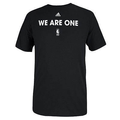 La NBA et Adidas vont mettre en vente des T-shirts portant le désormais célèbre slogan “We Are One”. Cette phrase est devenue le symbole de la lutte anti-racisme de la NBA après qu’elle a été postée sur le site officiel des Los Angeles Clippers suite aux sanctions infligées par Adam Silver à l’encontre de Donald Sterling. Devant la forte demande du public, la NBA a donc décidé de commercialiser ses T-shirts.