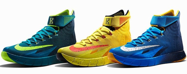 La version jaune est bien sûr inspirée par les couleurs des Cavaliers. Les deux autres chaussures font un clin d’œil aux racines australiennes du meneur de Cleveland.