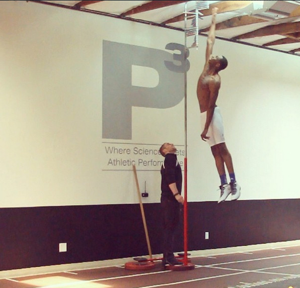 Depuis Gerald Green, on n’avait jamais vu un joueur avec une telle détente ! Voici la photo postée par Andrew Wiggins où on le voit effectuer le traditionnel test de détente sèche, mesurée à 1m11 (par son agent). La photo est presque surréaliste, et elle nous rappelle que l’ailier de Kansas nous avait déjà impressionnés par sa détente lors d’un match de la LeBron James Skills Academy. C’était il y a deux ans.