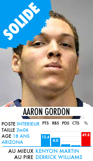 Aaron Gordon n’a peut-être pas fait autant parler de lui que Jabari Parker ou Andrew Wiggins, mais il est le freshman ayant le plus longtemps été dans les hautes sphères du classement pendant la saison. En effet, Arizona a remporté ses 21 premiers matchs de la saison et a été en tête du ranking NCAA pendant plusieurs semaines, et les Wildcats le doivent en grande partie au jeu de leur intérieur Aaron Gordon. Ses statistiques ne sont pas mirobolantes pour la simple et bonne raison qu’il s’est mis au service du collectif avant tout mais il a montré d’évidentes qualités en attaque, comme en défense. Au Draft Combine, il s’est mis en évidence par ses impressionnantes qualités athlétiques, à la fois explosif et rapide.
