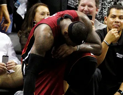 Du coup, le Game 1 des Finales NBA s'est joué par plus de 30°C et LeBron James a plusieurs fois demandé à se reposer. À quatre minutes de la fin, après avoir inscrit un layup face à Boris Diaw, le King n'était même plus en mesure de bouger. Sans doute victime de crampes, il a dû laisser ses coéquipiers.