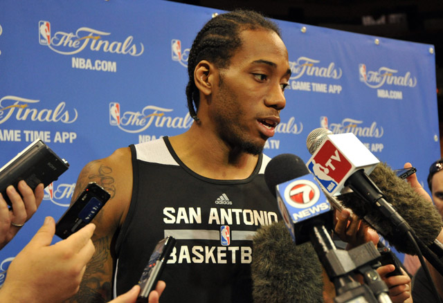 De ce côté-là, Kawhi Leonard s’en sort très bien. Difficile en effet de percer la carapace de l’ancien de San Diego State, qui gratte machinalement le pupitre lorsque les caméras de télévision se posent sur lui.