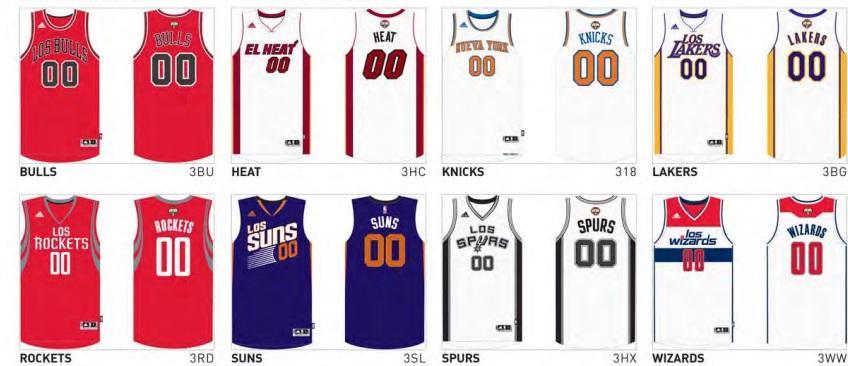 On y retrouve les habitués de l’évènement : Los Bulls, Los Lakers, Los Suns, Los Spurs, El Heat, Nueva York, Los Rockets (qui feront leur première apparition depuis 2010) … et un petit nouveau cette année, Los Wizards. Deux autres équipes ont déjà pris part au “Noche Latina” mais ne font pas partie des franchises retenues cette saison : Los Mavs et El Magic.