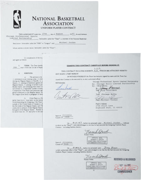 Ce document, déjà récupéré en 2000 lors d’une enchère par son actuel propriétaire, comprend 24 pages, toutes paraphées et/ou signées par Jordan, Jerry Krause, et le conseiller financier de “Son Altesse”, Irving Mandel. On trouve aussi la signature de David Stern sur la dernière page.