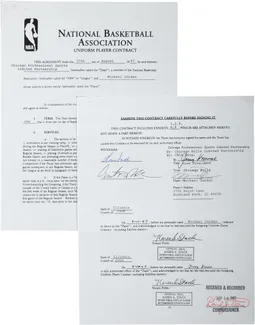 Ce document, déjà récupéré en 2000 lors d'une enchère par son actuel propriétaire, comprend 24 pages, toutes paraphées et/ou signées par Jordan, Jerry Krause, et le conseiller financier de “Son Altesse”, Irving Mandel. On trouve aussi la signature de David Stern sur la dernière page.
