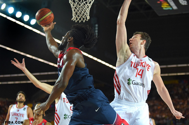 Contrairement à ce que laisse supposer l’écart final, les Américains ont dû lutter trois quarts temps avant de prendre enfin l’avantage dans l’ultime période. Portée par un super Kenneth Faried (22 points, 8 rebonds), mais peu concentrée en défense et brouillonne en attaque, l’escouade américaine a longtemps buté sur une défense de zone turque bien exécutée.