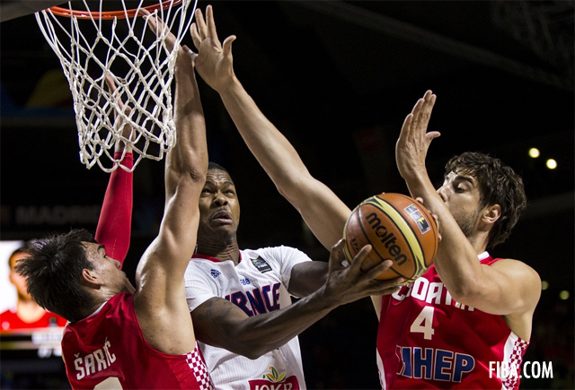 Bojan Bogdanovic, encore lui, a l’occasion de faire repasser son équipe devant mais il rate le tir et, au jeu des lancers francs, Thomas Heurtel et Nicolas Batum assurent le succès des Bleus (69-64).