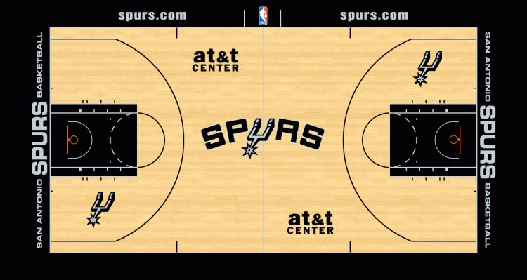 Champions en titre, les Spurs ont décidé d’offrir un petit lifting à leur parquet, et la grande nouveauté, c’est la présence d’un immense logo au centre du terrain.