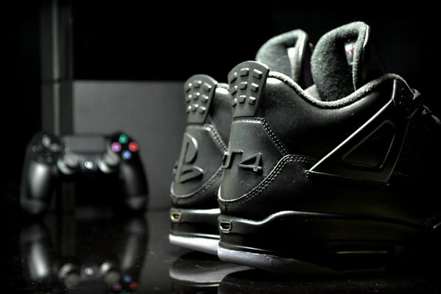 L’imagination des adeptes du “custom” est sans limite. Nouvelle preuve avec cette paire de Air Jordan 4 revue et corrigée aux couleurs de la PS4 par l’artiste anglais Jonny Barry, qui officie sur freakersneaks.com.