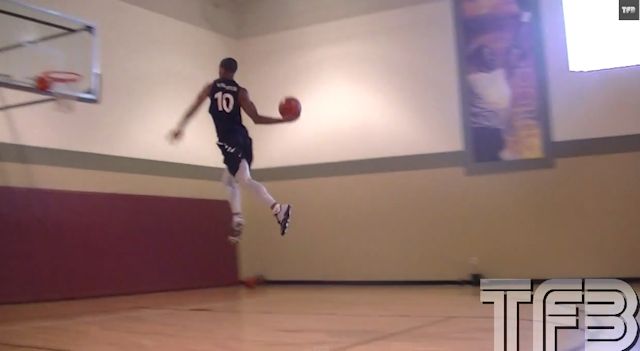 Les années passent, et la concurrence a beau être de plus en plus créative et aérienne, mais Guy Dupuy demeure l’un des meilleurs dunkeurs du monde amateur. On le voit ici dans une séance où il s’entraîne à prendre appel de la ligne des lancers-francs…