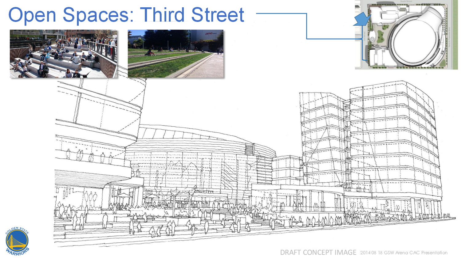 Lors d’une réunion avec les habitants du quartier, la franchise a dévoilé les premiers croquis de la nouvelle enceinte, vue de la rue. Moins impressionnante que le projet initial, cette nouvelle salle sera néanmoins accompagnée de deux tours de bureau et d’un grand espace d’accueil pour les supporters.