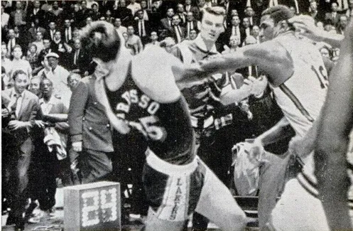 En octobre 1966, l'intérieur new-yorkais s'était ainsi littéralement battu, seul, contre toute l'équipe des Lakers. Suite à une altercation avec Rudy LaRusso, Willis Reed avait enchaîné les coups de poing sur ce dernier mais aussi sur le pivot Darrell Imhoff, obligé de se faire recoudre au-dessus de l'oeil, et sur l'autre pivot californien, John Block, qui finira avec un nez cassé. Après la rencontre, Rudy LaRusso admettra d'ailleurs qu'il en avait pris “quelques bonnes”.