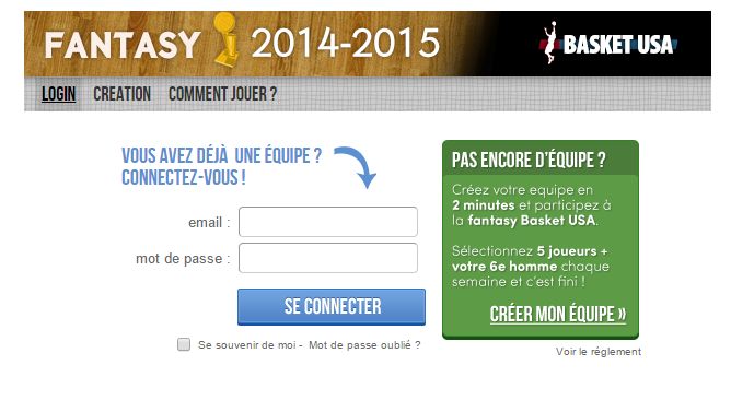 Connectez-vous sur https://www.basketusa.com/fantasy, et cliquez sur Créer mon équipe ou Création.