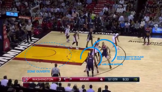 Mettre en place des systèmes très complexes avec énormément de mouvements et d’écrans n’est donc pas toujours la bonne solution. Parfois, il suffit d’un seul mouvement pour tromper la vigilance adverse. En début de match, les Wizards ont ainsi trouvé un alley-oop pour Paul Pierce sur une passe de John Wall.