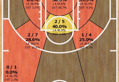 Incapable de rentrer un tir à trois points avec une gestuelle pas encore aboutie, Payton éprouve également les pires difficultés à trouver le cercle sur ses tentatives plus proches. Dans le rouge dans quasiment toutes les zones de tirs qu’il utilise, Elfrid doit encore peaufiner sa technique de tirs. Surtout, il doit être capable de diversifier davantage son arsenal offensif. Plus inquiétant, il n’arrive pas à finir ses actions dans la peinture avec un 17/44 qui interroge sur sa dureté physique. Encore trop tendre, Payton se fait donc cueillir par les babars de la ligue quand ce dernier essaye d’aller au bout de son action.