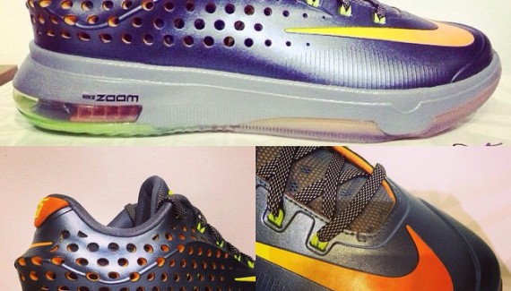 Ces nouveautés commencent à se préparer dans les coulisses, et voici peut-être celle qui sera la KD 7 Elite. C’est en tout cas ce qu’avancent plusieurs sites spécialisés américains, avec ces photos de ce qui est présenté comme un échantillon de la prochaine chaussure de Kevin Durant.