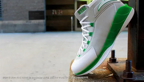 Alors que la Rondo 1 faisait la part belle au plastique, le cuir fait un retour remarqué sur la RR2. La nouvelle chaussure du meneur des Celtics se démarque aussi avec un large laçage asymétrique et une semelle interne qui inclut des petites capsules de ce qui semble être un gel d'amorti.