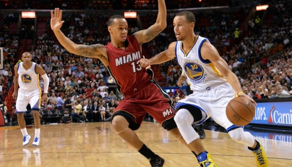 Si les Warriors trouvent rapidement leur rythme en début de match, infligeant un 16-7 en quatre minutes, notamment grâce à Andrew Bogut, parfait dans la distribution du jeu, Miami ne reste pas les bras ballants. En premier lieu, Luol Deng et Chris Bosh répondent derrière l’arc pour revenir à niveau. La défense du Heat se resserre et surtout, les hommes d’Erik Spoelstra dominent le rebond. Enfin, Mario Chalmers prend feu avec onze points consécutifs pour porter les siens en tête 36-30 après douze minutes de jeu.