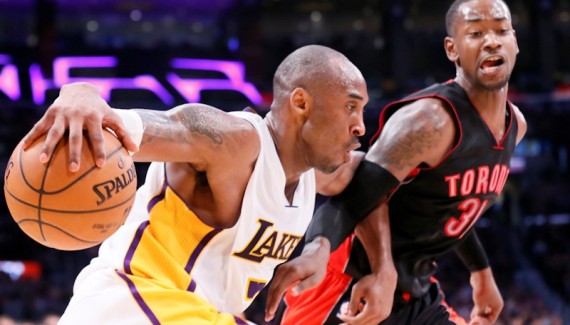 Grâce à un gros triple double de Kobe Bryant (31 pts à 11/24, 11 rbds, 12 pds) et l’apport de Nick Young en sortie de banc (20 pts à 6/11), les Lakers remportent leur première victoire depuis quatre matchs et défont les leaders de la conférence Est 129-122 après prolongation. DeMar DeRozan blessé, Grevis Vasquez a très bien assuré l’intérim (19 pts à 50%, 5 pds) mais sa performance et celle de Kyle Lowry (29 pts à 10/28, 6 rbds, 9 pds) n’ont pas suffi.