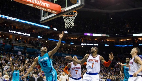 Pourtant, les hommes de Steve Clifford, avaient déroulé jusque là, prenant l’avantage dès le premier quart avec un 7-0 pour mieux faire la course en tête (31-21). Grâce à un jeu offensif à nouveau équilibré avec Al Jefferson, Henderson et même Stephenson à créditer d’un bon match, et le retour en 6e homme de Gary Neal, Charlotte pointe à +12 à la pause (57-45). Fidèle au poste, Al Jefferson répond au trio Calderon-Stoudemire-Dalembert afin de maintenir l’écart au retour des vestiaires (67-53). Puis vient le tour de Gerald Henderson de monter en pression et d’enchaîner les actions positives en attaque qui portent la marque à +21, le plus gros écart du match (82-61). C’est alors que la machine s’enraye, et Carmelo Anthony (15 points dans le dernier quart) débute son festival. Avec l’aide d’un Hardaway Jr impressionnant de sang froid à 3 points (3/4 dans le dernier acte), Melo réussit l’impossible en terminant son récital par deux paniers à 3 points qui glacent le sang des fans de Buzz City en faisant passer la marque à 101-102 à 40 secondes de la fin.