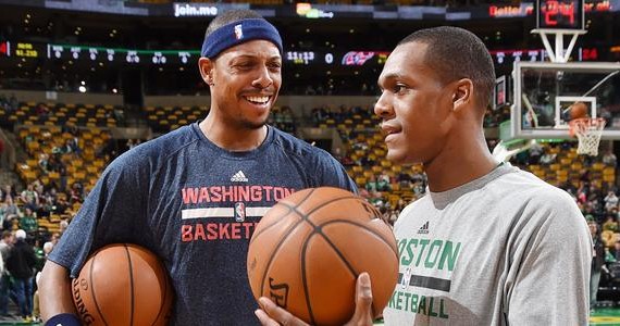 Opposés hier soir dans un match de matinée, Rajon Rondo et Paul Pierce se sont bien battus pour leur équipe respective, avec le premier qui finit en triple double (13 points, 13 rebonds, 11 passes) et le second qui termine à 16 points. Dans la défaite de ses Wizards, Pierce n’a pas forcément apprécié plus que ça la performance de son équipe… Mais l’ancien MVP des Finales avec l’uniforme celte a tout de même été heureux de retrouver son ancien coéquipier.