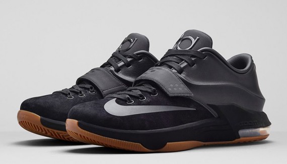 Au placard les coloris tapageurs, et retour aux sources pour la KD 7. Samedi, c’est une chaussure totalement noire, seulement décorée d’une “gum sole” qui sera disponible, notamment chez B4B Sneakers Shop.