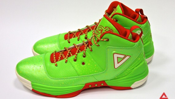 Pour la chaussure que portera George Hill le 26 décembre, la marque chinoise a décidé de miser sur le vert fluo et le rouge, avec quelques traces de jaune sur la tige. Jusque là, rien de bien original pour la période. Mais le petit bonus, c’est une bouteille imprimée à l’intérieur de la languette. Dommage que les Pacers n’aient pas grand chose à fêter cette année.