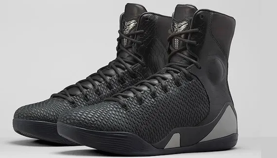 Après une version rouge, la Kobe 9 High EXT KRM est de retour dans une édition monochrome noire qui risque d'être difficile à porter sur le parquet.