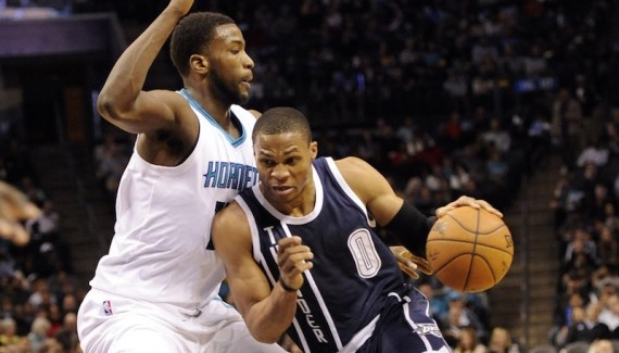 Tel le Diable de Tasmanie, Russell Westbrook détruit tout sur son passage, et après son trophée de MVP récolté au All-Star game, le voici qui enchaîne deux matches à plus de 30 pts, 10 pds et 5 rbds. Personne n’avait encore réalisé cette performance deux matches de suite cette saison. Après Dallas jeudi soir, c’est Charlotte qui subit la loi du meneur de Thunder, battu 110-103 à domicile. Grâce à ce succès, OKC fait le break sur Phoenix et New Orleans dans la course à la 8e place de la conférence Ouest.
