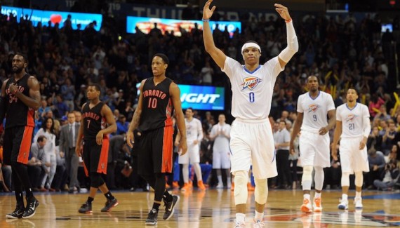 Même si Tony Parker a brillé avec 32 pts, dont 15 d’affilée, face aux Bulls, difficile de ne pas choisir Russell Westbrook, auteur de son 7e triple double de la saison, dans la victoire face à Toronto.