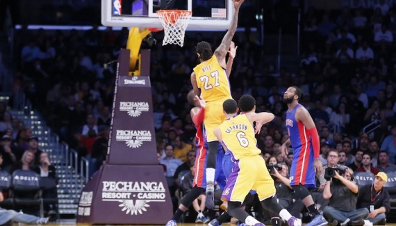 Paradoxalement, c’est sous les panneaux que les Lakers ont notamment fait la différence avec 46 points dans la raquette, et une domination aux rebonds (46-41). On écrit “paradoxalement” car Greg Monroe (24 pts, 9 rbds) et Andre Drummond (14 pts, 21 rbds) ont encore fait leur boulot. Le problème, c’est que le premier rideau défensif est absent, et qu’ils n’ont pas eu coup de main de leurs coéquipiers. Jordan Clarkson et Wayne Ellington en ont d’ailleurs profité pour marquer près du cercle.