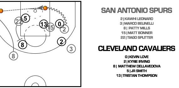 La nuit dernière, face à Cleveland, c’est Kawhi Leonard qui s’est chargé de déborder la défense des Cavaliers avant d’offrir le ballon à Patty Mills, venu dans le coin après avoir profité d’un écran de Tiago Splitter sur Matthew Dellavedova.