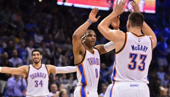 Pas de triple double à noter mais Russell Westbrook (27 points, 11 passes) et son Thunder engrangent une 4e victoire d’affilée face aux Lakers (127-117). En tête du début à la fin, OKC a pu compter sur un très bon Enes Kanter (25 points, 16 rebonds) et un solide Dion Waiters (23 points) pour compléter la marque. A 56% de réussite aux tirs, dont 51% à trois points, le Thunder a tranquillement déroulé son jeu face à des Lakers bien trop tendres à l’intérieur. Seul Jordan Clarkson (30 points) a surnagé…