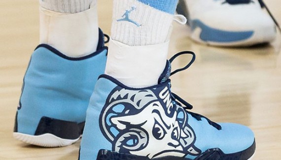 La tige tissée de la Air Jordan XX9 permet des possibilités infinies en terme de coloris et de motifs. La preuve avec ce modèle unique que porteront les joueurs de North Carolina ce jeudi contre Wisconsin.