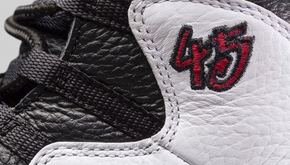 Vingt ans plus tard, Jordan reprend les couleurs classiques de l’Air Jordan X, tout en ajoutant quelques détails sur et sous la chaussure comme le numéro (45) et son palmarès de 1985 à 1994.