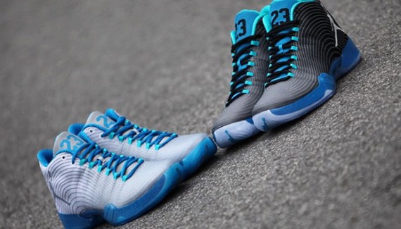 Jordan Brand a préparé une version “playoffs” grise pour les rencontres à Oklahoma City, et une noire pour les déplacements. À chaque fois, quelques touches de bleu viennent accentuer l’ensemble.