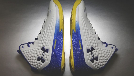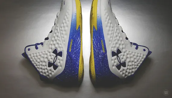 Le site Sneakernews a mis la main sur le coloris que portera le meneur des Warriors dans les semaines à venir. Rien de particulièrement fou, avec une base blanche sobre et efficace. On remarquera simplement un changement au niveau des matières. La tige synthétique “AnaFoam” semble avoir été remplacée par du cuir.