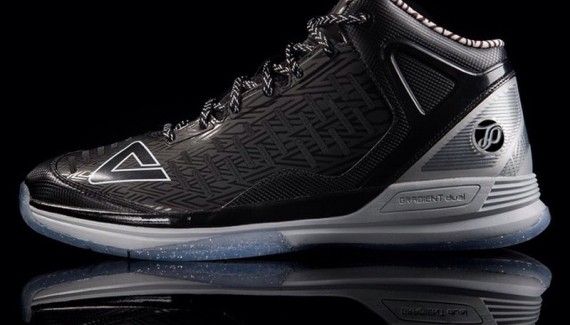 Pour s’accorder avec les maillots des San Antonio, la marque chinoise a mêlé noir et gris, mais en y ajoutant quelques touches plus originales, comme une semelle translucide dans laquelle on retrouve des paillettes. La tige reçoit un motif triangulaire.