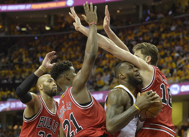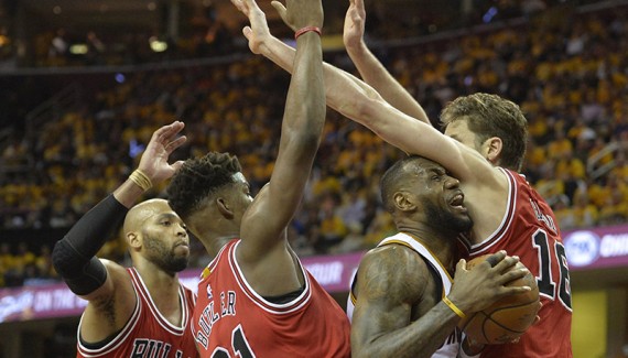 Timofey Mozgov rentre parfaitement dans le troisième quart et permet même à son équipe d’égaliser tôt dans la période à 51 partout. Mais, après un 7-2 initial, les Cavaliers encaissent un 13-0 qui fait mal aux dents, avec un Derrick Rose toujours aussi cinglant derrière l’arc, Jimmy Butler à l’interception et Pau Gasol métronomique dans le tir en périphérie. Le pivot ibère rentre ses cinq tirs et porte l’avantage de Chicago à +15. Pas en rythme sur son tir avec 9 tirs ratés sur 16 tentatives, LeBron James se démultiplie à la passe et Dellavedova puis Shumpert rentrent de loin. Mais Pau Gasol est intenable dans le petit périmètre, il score 13 points sur le quart temps avec un double double avant le dernier quart. Chicago conserve un avantage certain (81-70) mais Cleveland ne veut pas lâcher.