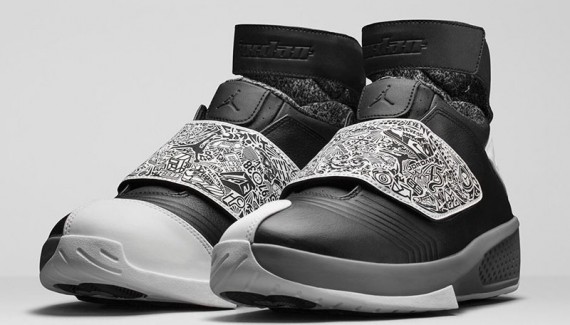 Pour la troisième fois de l’année, le modèle futuriste de Jordan Brand sera sur les étalages à partir de ce samedi 9 mai. Au programme : beaucoup de noir, du blanc, une semelle intermédiaire grise et une languette recouverte de dessins.