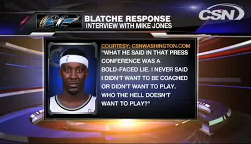– toujours mercredi est prévue une réunion entre le joueur et son coach. Mais c’est son assistant, Randy Wittman qui discute avec Andray Blatche. Et c’est Blatche qui raconte :