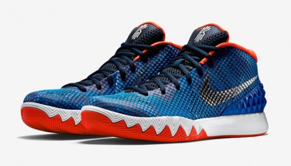 Pour la Kyrie 1, la marque a décidé de miser sur un bleu intense, avec une virgule argentée ainsi que des touches de rouge et de blanc.
