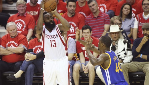 Avec 45 points (record en playoffs égalé), 7/11 à trois-points, 9 rebonds et 5 passes, James Harden a fait la misère à la défense des Warriors, quel que soit son adversaire direct.