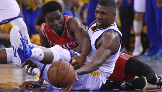 Même s’il a peu joué lors de ce Game 5, Clint Capela a marqué des points durant ces playoffs (3.6 points et 2.6 rebonds de moyenne). Plusieurs fois félicité par Kevin McHale, le Suisse s’est imposé comme le back-up de Dwight Howard en l’absence de Donatas Motiejunas. Dans les vestiaires de l’Oracle Arena, malgré la déception de l’élimination, le rookie n’oubliait pas le chemin parcouru depuis l’an passé, quand il attendait de savoir quelle équipe le choisirait lors de la Draft.