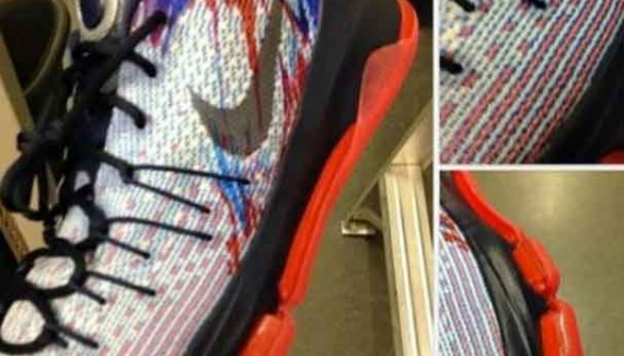 Le coloris “Independance Day” sera le premier à être disponible pour la KD 8. Depuis quelques heures, les premières images de cette chaussure ont fait leur apparition, notamment chez nos confrères de Nicekicks.com.