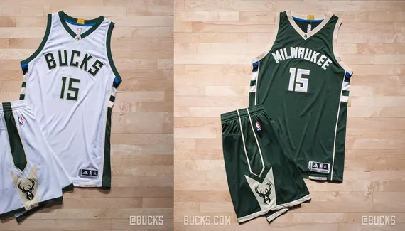 Après avoir dévoilé leur nouveau logo, les Bucks ont présenté samedi leur maillots pour la saison 2015-2016. Le maillot porté à domicile sera blanc avec l'inscription “Bucks” sur la poitrine. Celui porté en déplacement sera vert et crème et portera l'inscription “Milwaukee”. À noter en bas de maillot la présence du slogan “Fear the Deer” à l'envers.